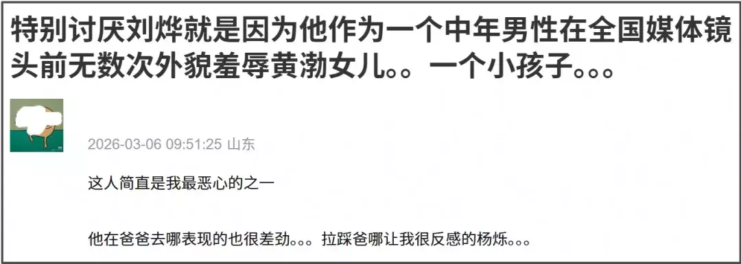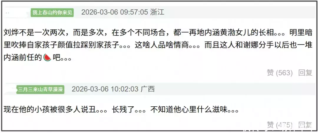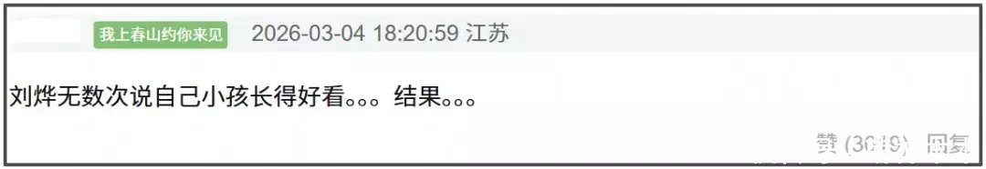 回旋镖虽迟但到,现在诺一被网友调侃长相普通,甚至被部分人讽刺“长残了”,不知道刘烨看到之后心里是什么滋味。以前他毫无分寸感地在全国媒体镜头前外貌羞辱黄渤的女儿,现在也算是风水轮流转,轮到他的孩子被嘲笑颜值了。